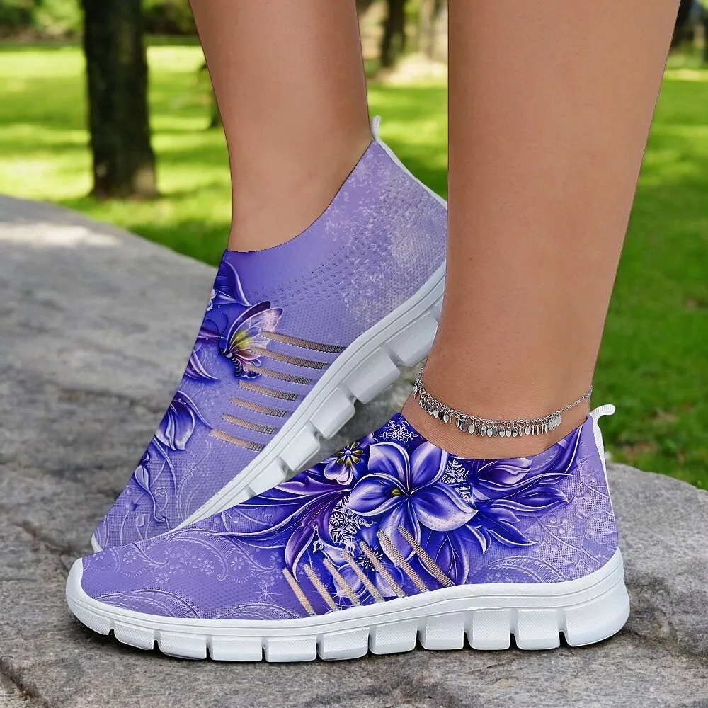 Floral Print Flyknit Sneakers with Breathable Upper, Lightweight Sole and Comfortable Fit for Casual Walks and Outdoor Activities