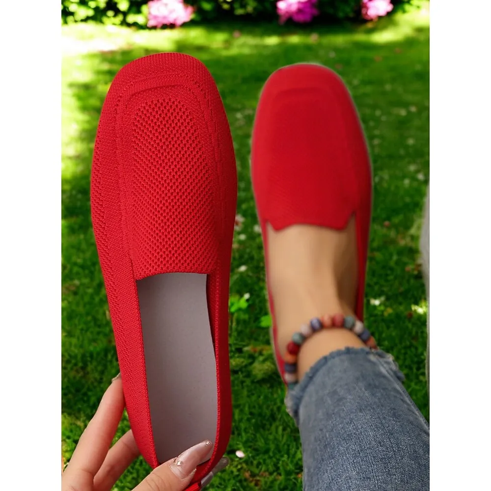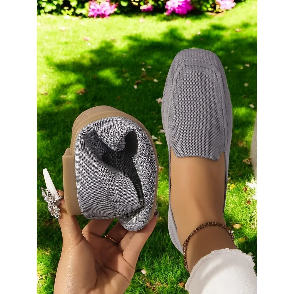 Slip-On Flyknit Shoes with Soft Knit Upper, Casual Style and Foldable Cushioned Sole for Comfortable Summer Wear and Daily Activities