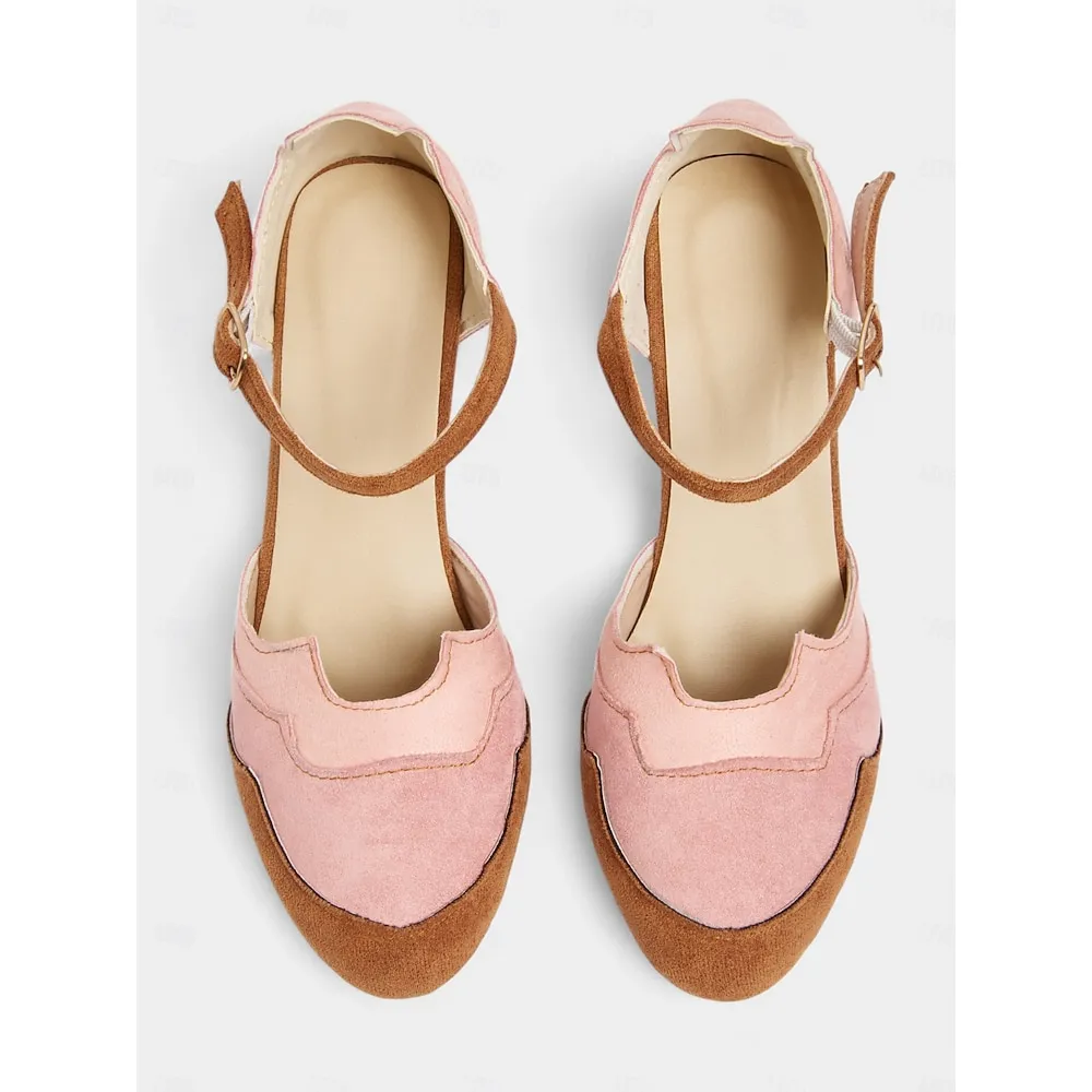 Women’s 1920s Flapper Two-Tone Suede Mary Jane Heels – Vintage Pink and Brown Block Heel Pumps for Gatsby Parties and Retro-Themed Events