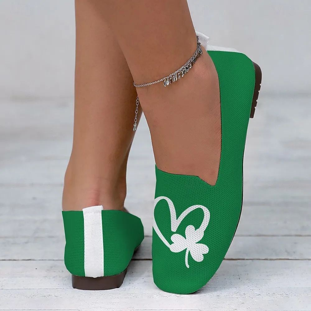 Women’s Comfortable Green Slip-On Flats with Clover Heart Printed Design Perfect for Celebrate St. Patrick’s Day