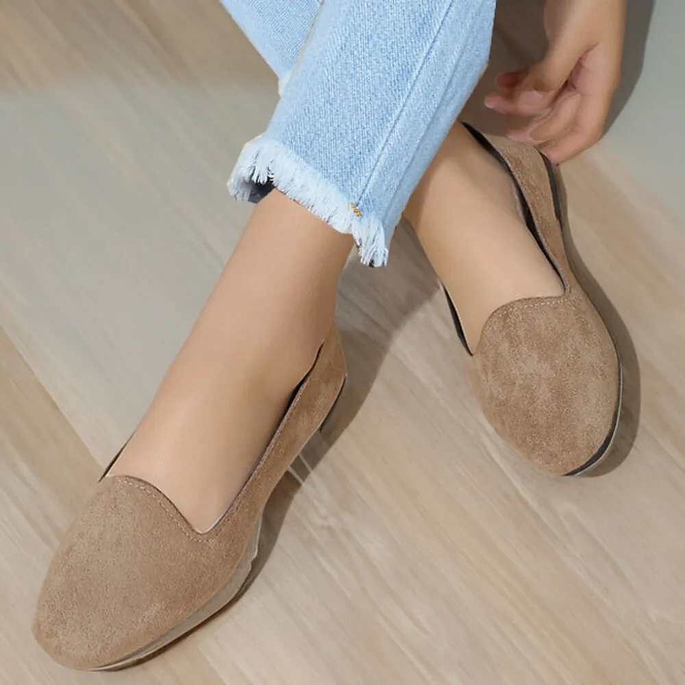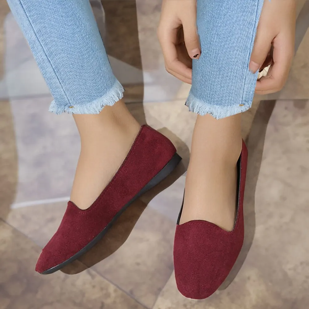 [Fabric] These women’s flats are crafted from high-quality PU material, providing a durable and stylish finish with a soft, velvety texture that adds a touch of sophistication.[Design Highlights] Featuring a minimalist design, these flats incorporate a classic round toe and a flat heel, ensuring both style and comfort. The slip-on style ensures easy wearability and a snug fit, making them versatile for various occasions.[Occasions] Perfect for everyday wear, these flats are suitable for both casual and formal settings. Whether you’re going for a walk or attending a casual gathering, these shoes blend fashion with functionality seamlessly.[Style] With their solid color options, including black, red, and wine, these shoes can effortlessly match any wardrobe, making them a versatile choice for the fall season.[Size Notice] Available in a range of sizes from US5.5 to US10.5, these flats cater to a variety of feet, ensuring a comfortable fit for different preferences.These flats offer both style and convenience, making them a must-have addition to any shoe collection.OK