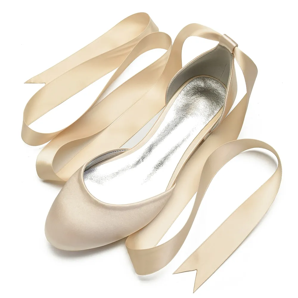 [Fabric]: Crafted from luxurious satin, these women’s ballet flats offer a silky and smooth finish that exudes elegance and sophistication. The satin upper provides a rich texture, setting a high standard for comfort and style.[Fit]: Featuring a classic round toe design, these flats ensure a comfortable fit while maintaining a timeless and stylish look. The flat heel type further enhances comfort, making them suitable for long periods of wear.[Design Highlights]: The standout feature of these ballet flats is the long green satin ribbons that lace up and wrap elegantly around the ankle. This design adds a feminine and sophisticated touch, while the shiny metallic interior lining introduces a contemporary edge.[Occasions]: Perfect for weddings and special occasions, these flats are a versatile choice for adding a chic and elegant touch. Whether attending a formal event or looking to elevate a casual outfit, these shoes meet a variety of style needs.[Size]: Available in a wide range of sizes from 36 to 44, these ballet flats cater to diverse foot sizes, providing an option for every woman seeking elegance and comfort.OK