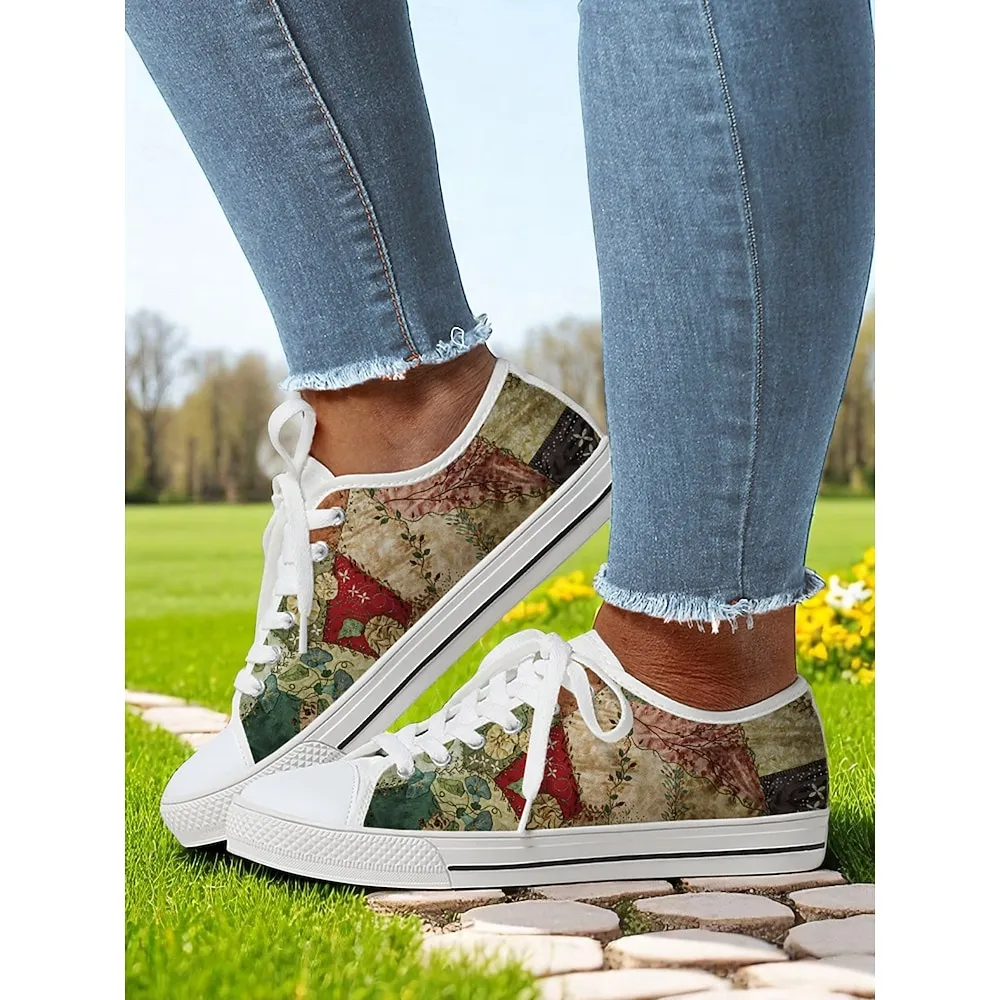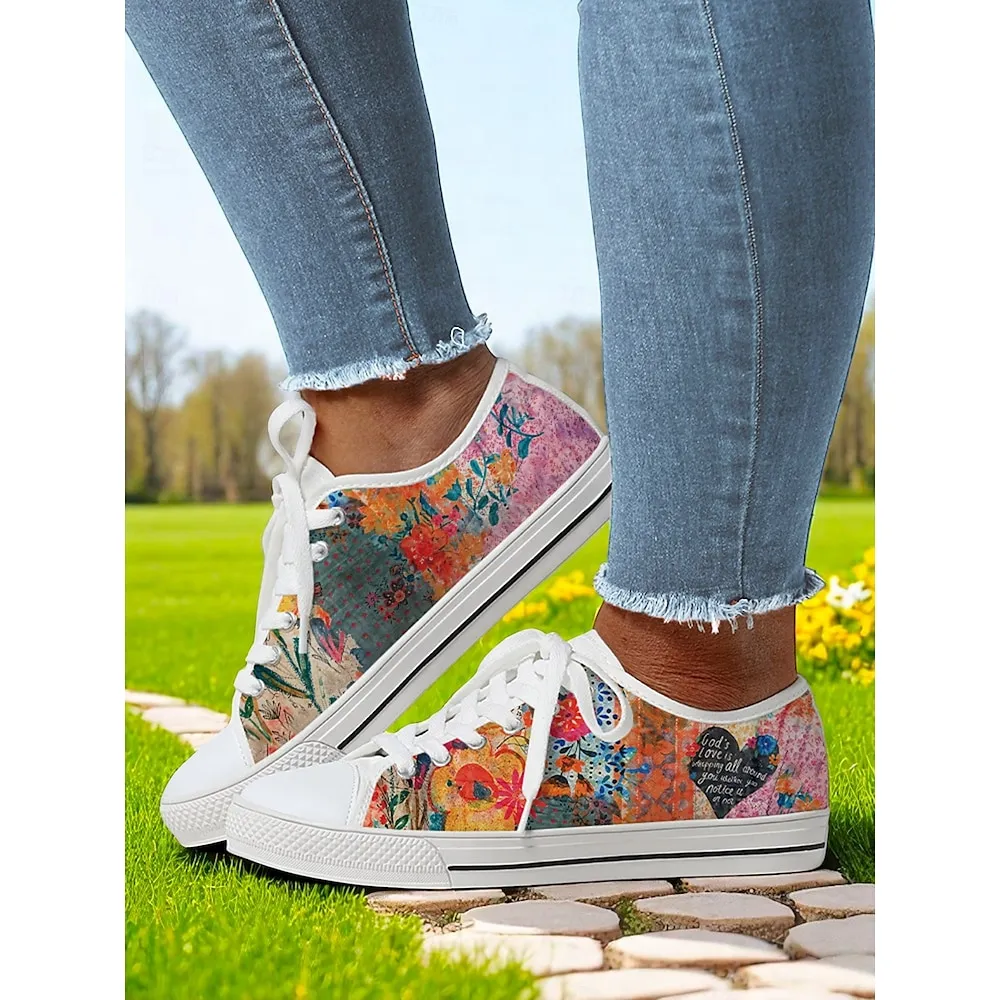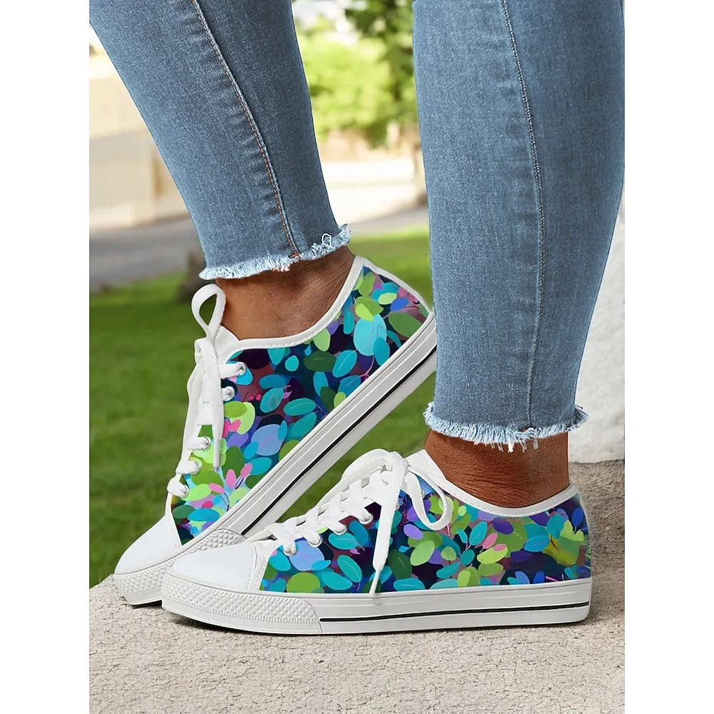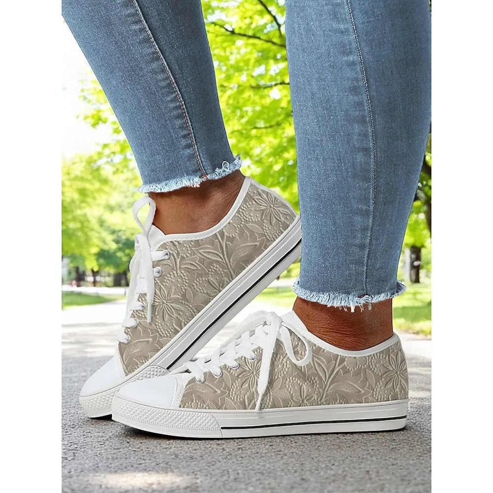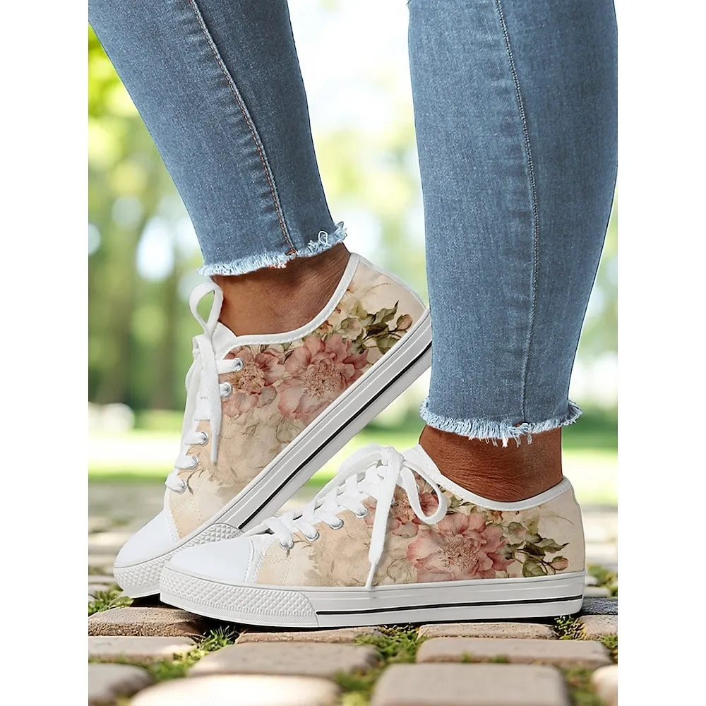 Women’s Lace – Up Canvas Sneakers with Floral Print – Casual & Youthful Style for Teenagers and Young Women in School, Street Outings & Casual Gatherings