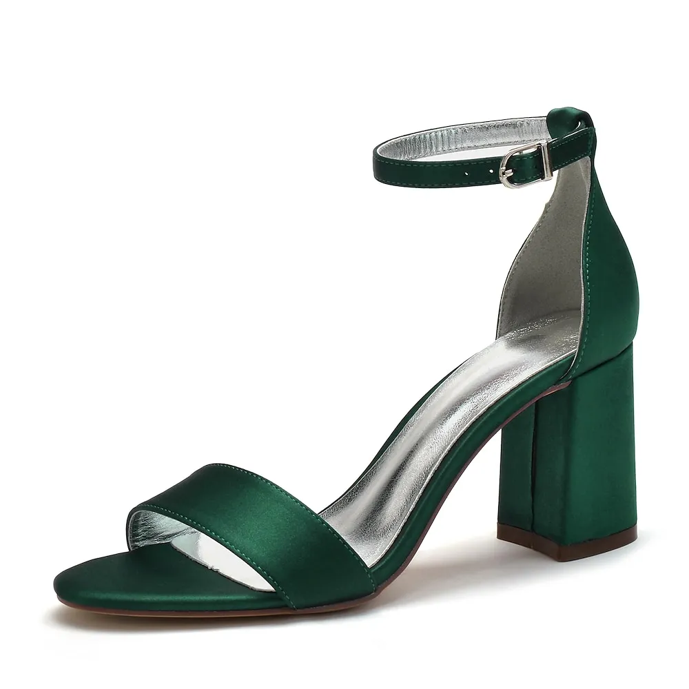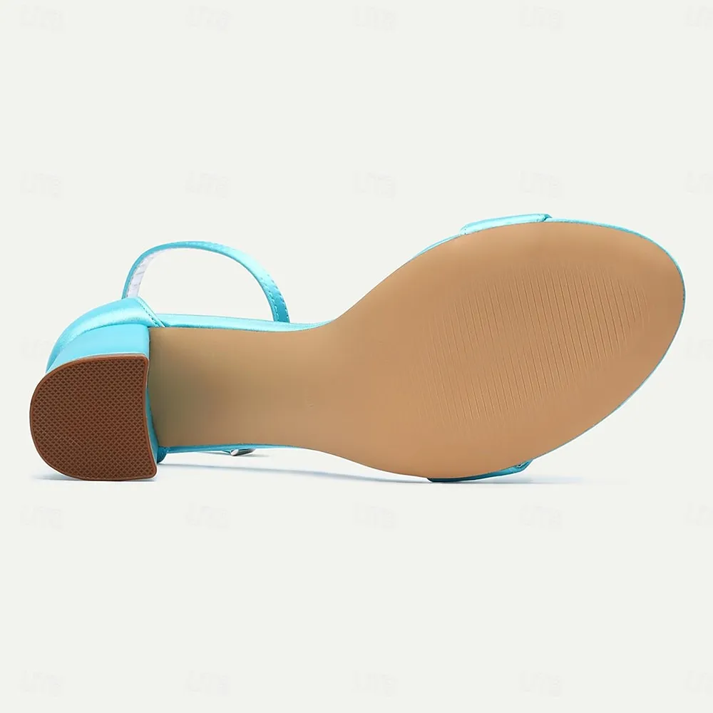 Women’s Purple Satin Block Heel Wedding Shoes – Elegant Ankle Strap Open-Toe Bridal Sandals for Formal Events and Parties