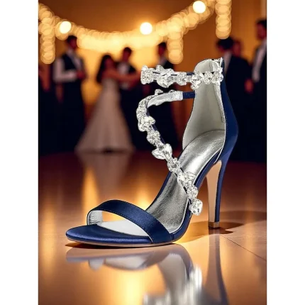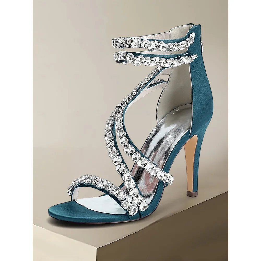 Women’s White Rhinestone Strappy High Heel Sandals – Elegant Cocktail Party Wedding Shoes